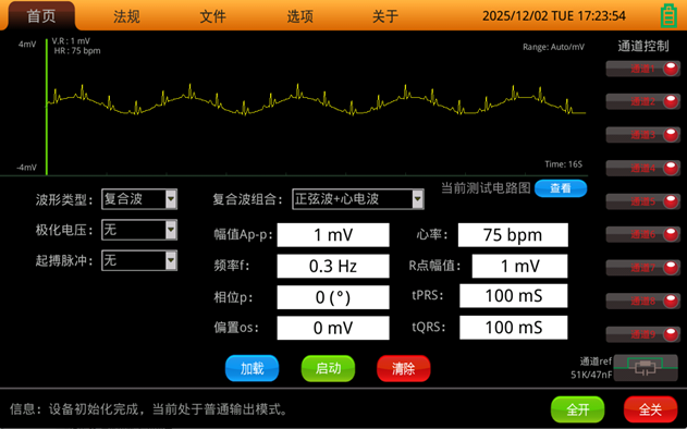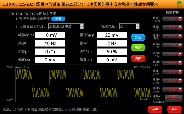 内置心电相关常用法规标准测试电路,软件选择法规条款即可自动搭建测试电路;
